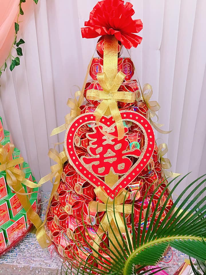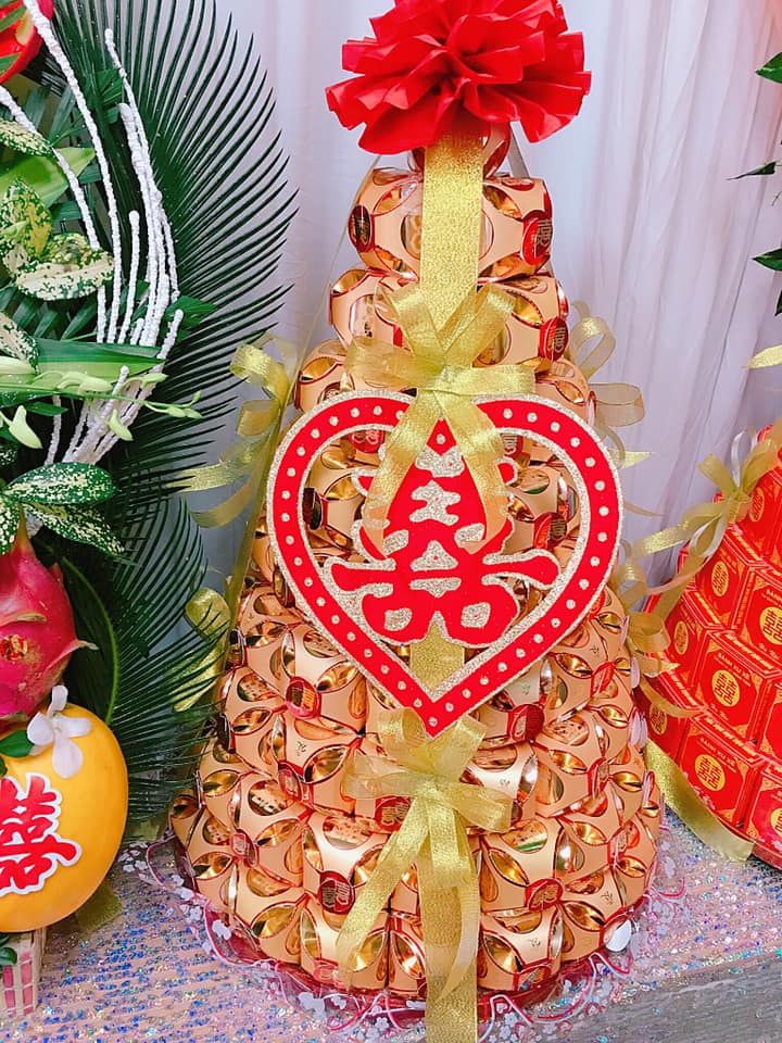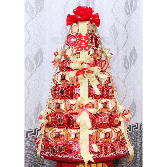 Tráp sen Hàng Điếu. Với hương vị thêm ngon đậm đà. Được xếp theo hình tháp và trang trí hoa nơ đẹp mắt.
